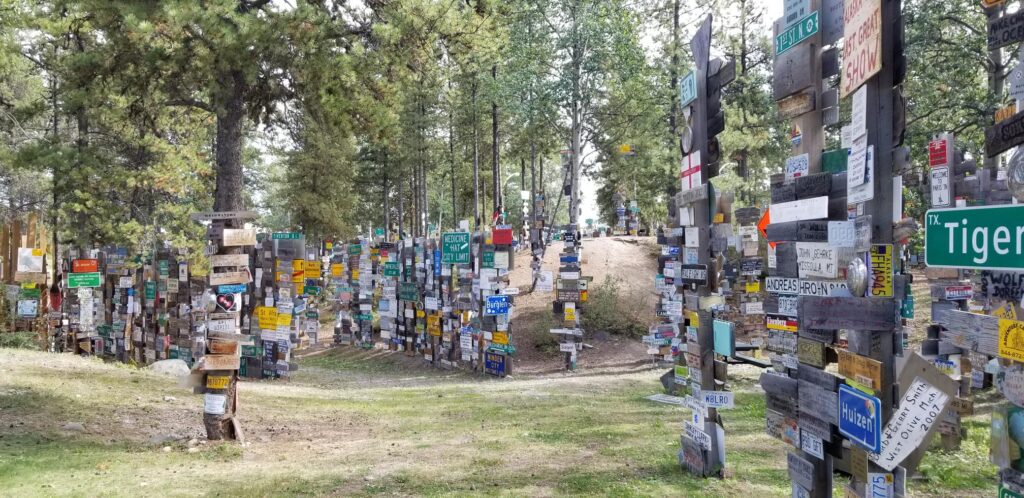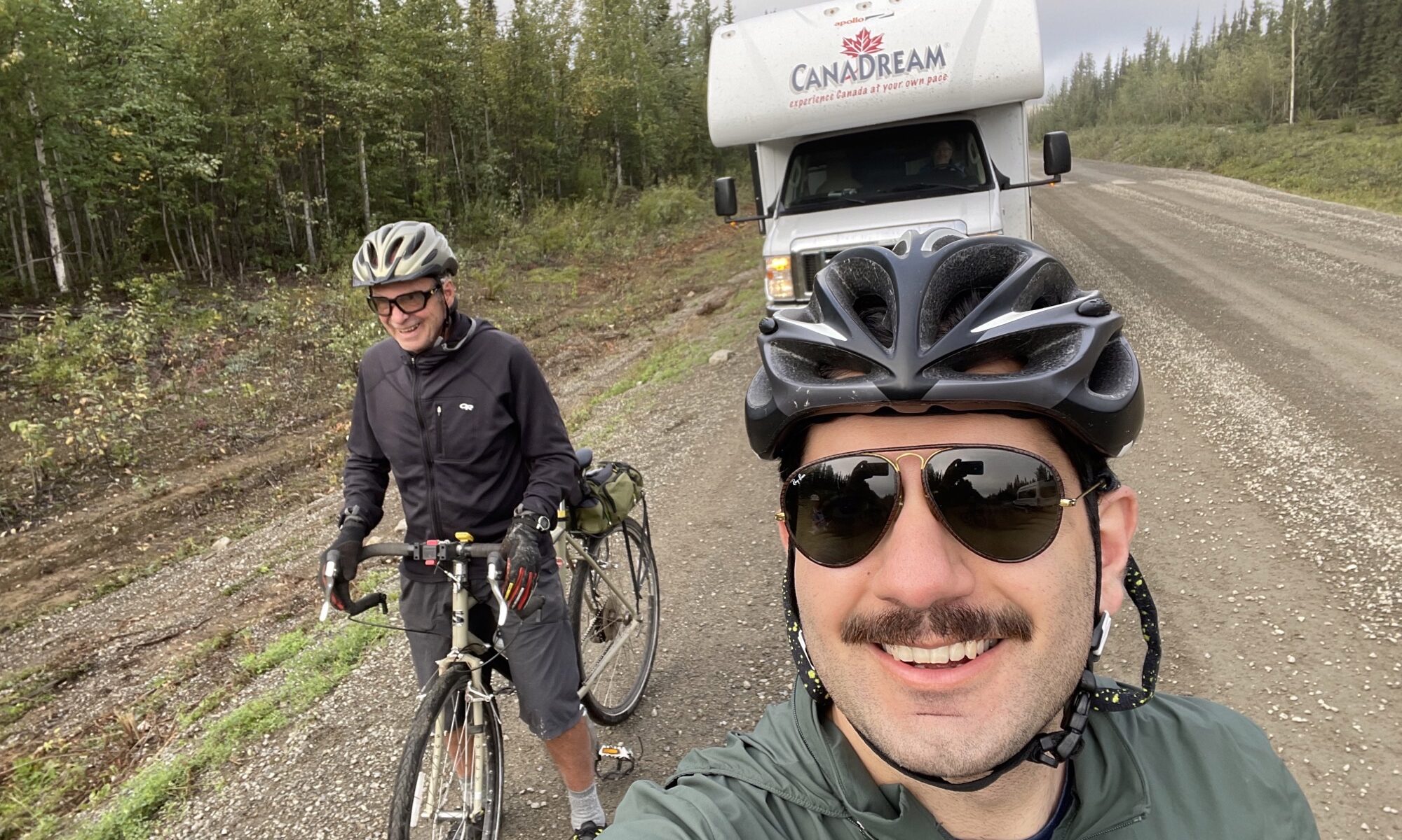 Dave had a broken spoke on road -with a big wobble, so switch out from Dale driving to Dave and bike on back with repair in tent – Dave effectively deconstructed and reconstructed the back tire – have I said yet that this is the team to have? ….. still no flat tires